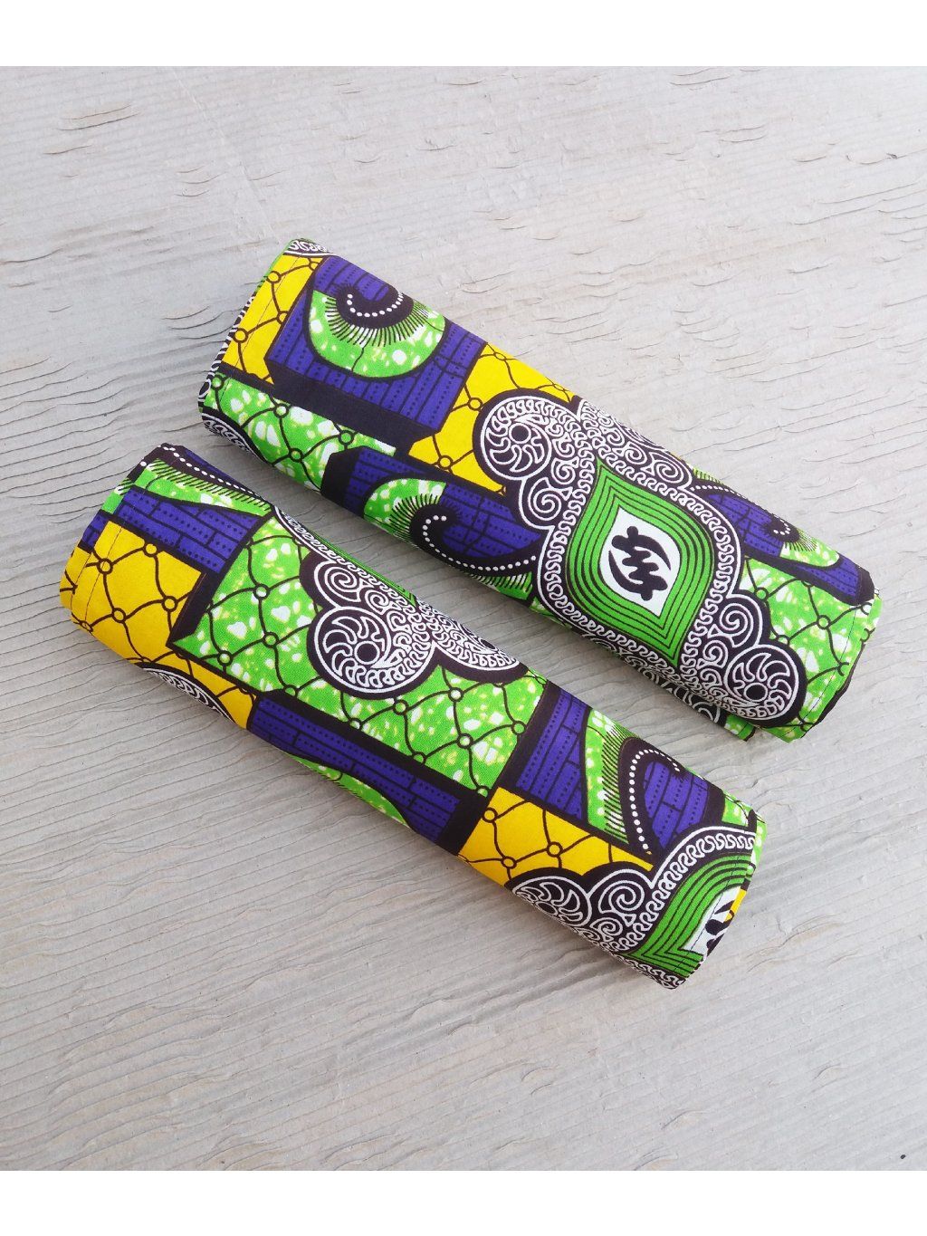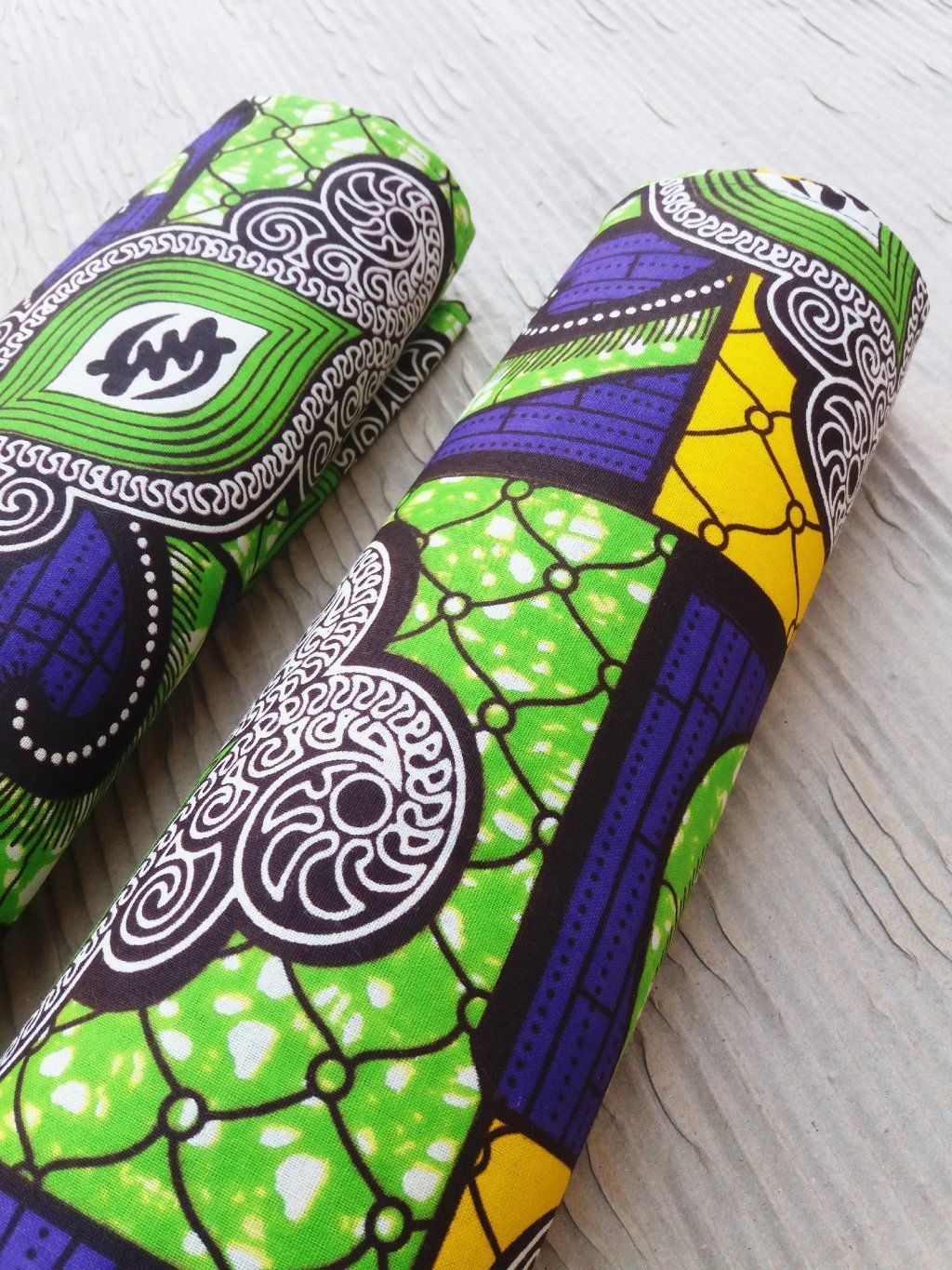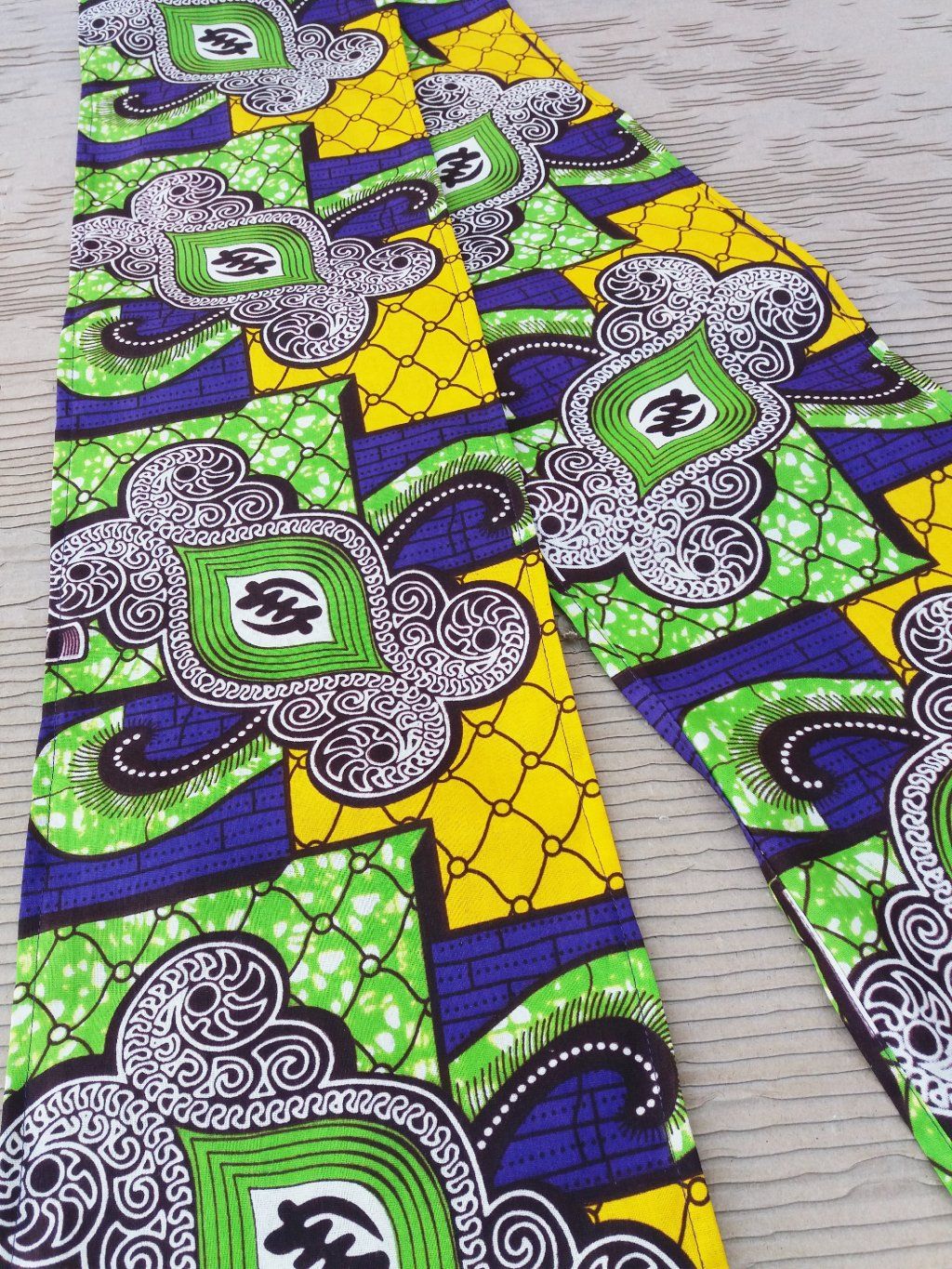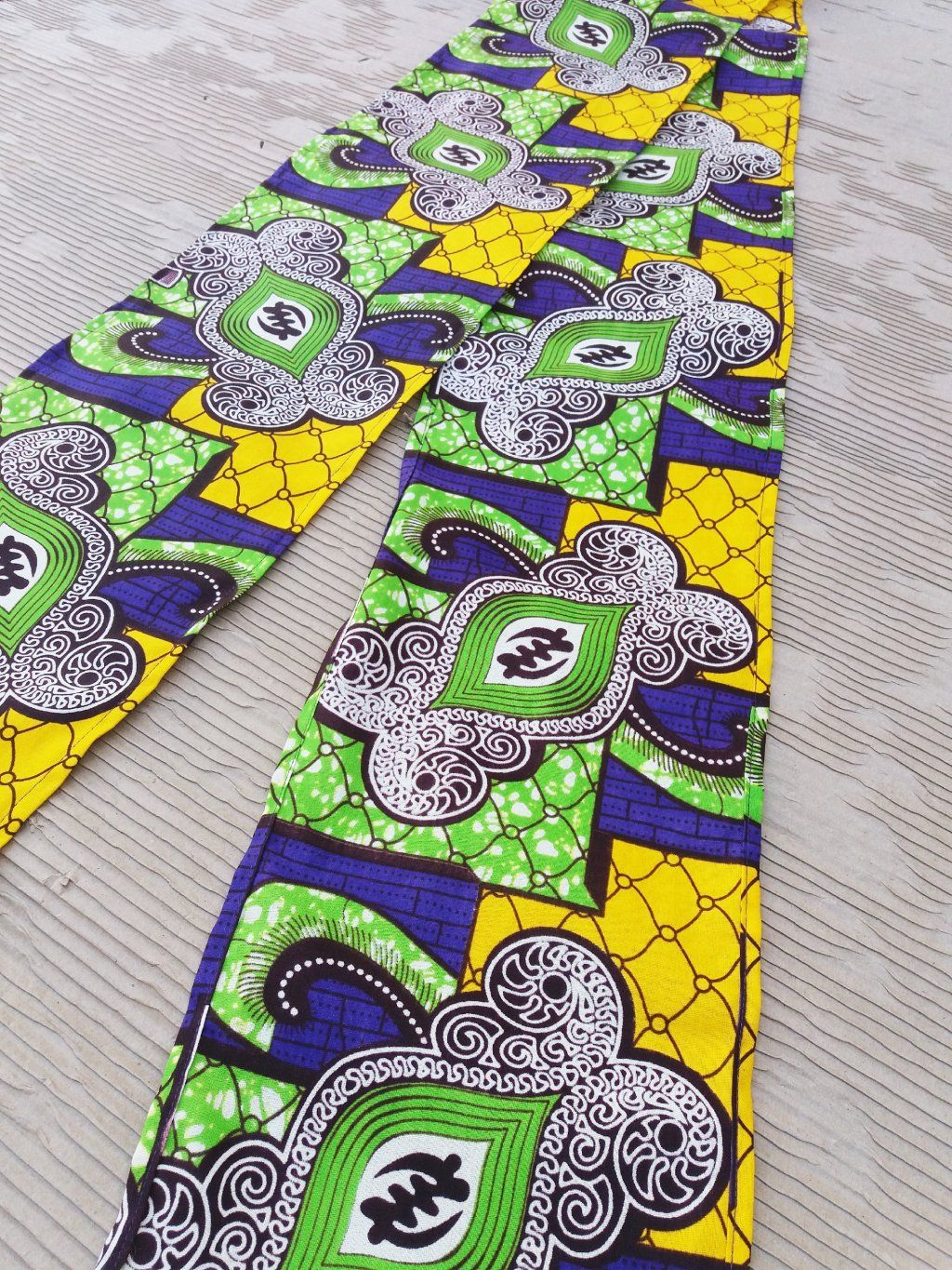 Africký šátek ušitý ze 100% bavlny v zelených a žlutých tónech.