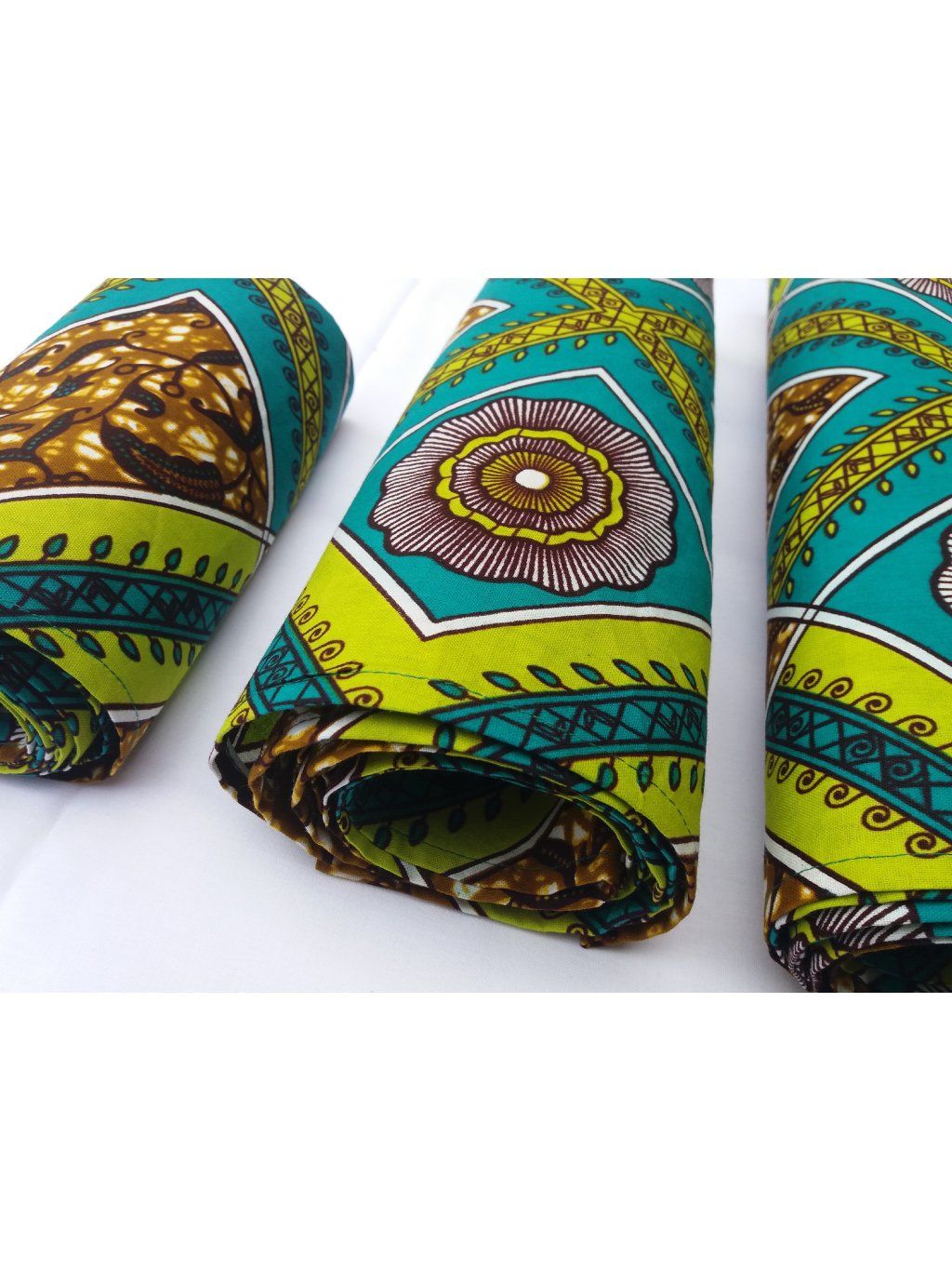 Africký šátek ušitý ze 100% bavlny v zelených tónech.